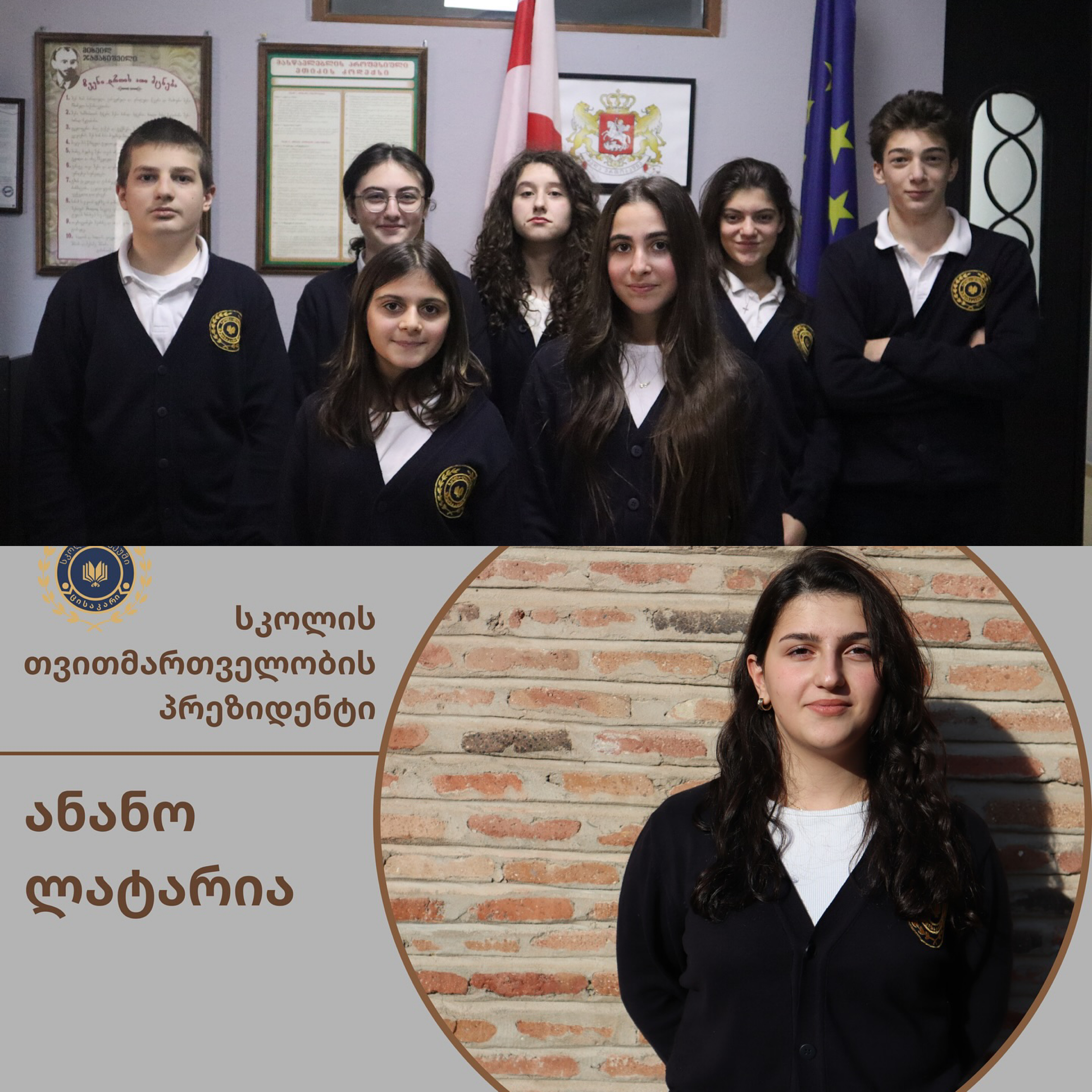 არჩეული თვითმართველობის წარმომადგენლები: VII კლასი: ანასოფია ტერტერაშვილი ნინი პაპიაშვილი VIII კლასი:ანასტასია მეგრელი ბარბარე ჩოხელი IX კლასი:დემეტრე იობიძე თამარ კვერკველია X კლასი : კატო ბერიძე საბა გრიგალაშვილი XI კლასი: ანანო ლატარია ლუკა ღოღაძე .სკოლის პრეზიდენტად არჩეულია — ანანო ლატარია